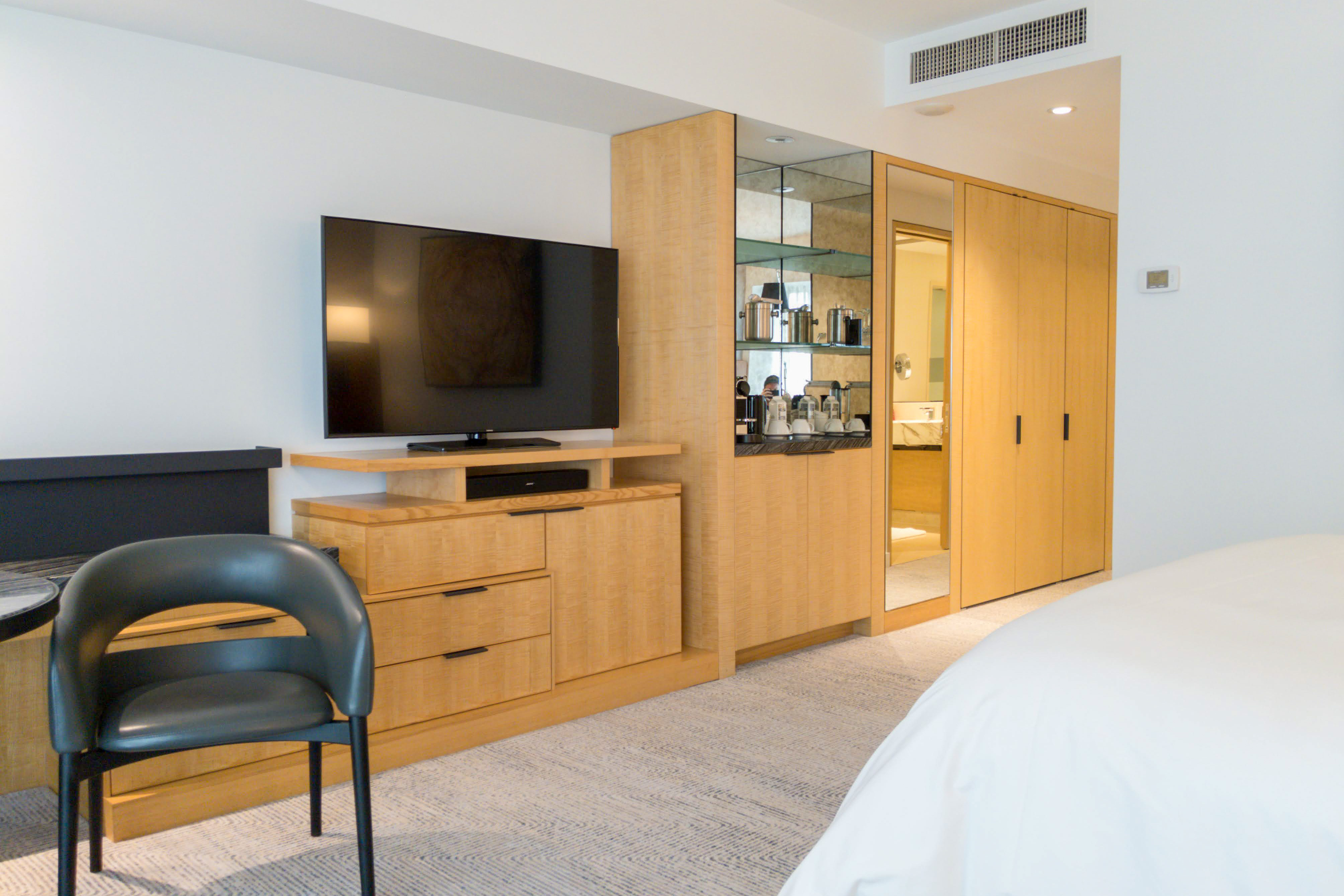 Nestled in the heart of the city, the rooms at the Four Seasons Seattle capture the essence of Seattle’s innovative spirit and balance this with unrivaled comfort. As you step into the room, the king bed, clad in immaculate white linens with the Four Seasons logo subtly stitched onto each pillow, promises a night of decadent slumber. To start the day, you could enjoy a Nespresso using the provided machine, but we recommend you treat yourself and not miss out on the coffee concierge service, available from 6am to 10:30am. After a quick call down to the front desk, hotel staff will bring you a fresh cup of coffee without you even having to get out of bed.